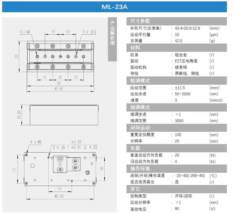 压电直线纳米位移台ML-23A技术参数